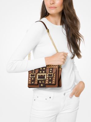 Hayden Medium Studded Two Tone Saffiano Leather Messenger Bag