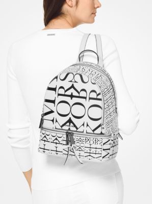Michael Kors Rhea Medium Newsprint Logo Leather Backpack
