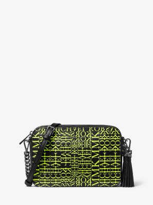 Michael Kors Ginny Medium Newsprint Logo Leather Crossbody Bag eBay