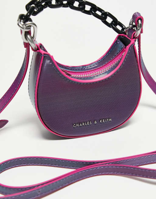 Charles Keith mini crossbody bag with chunky chain in ombre pink