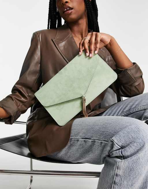 ASOS DESIGN tassel clutch bag in sage green ASOS
