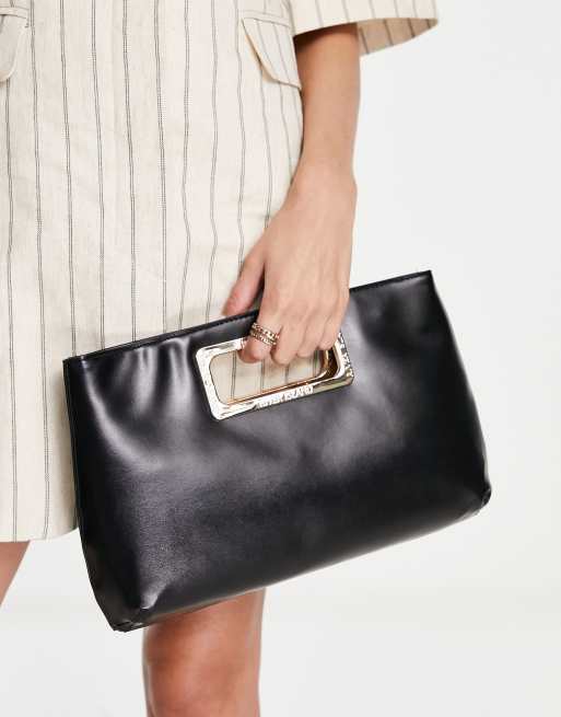 River Island metal handle clutch in black ASOS