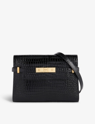 Ysl clutch bag clearance selfridges, SAINT LAURENT Manhattan small croc embossed leather top handle clearance