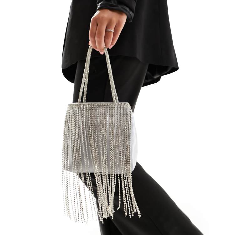 Asos silver clutch clearance bag, ASOS DESIGN diamante fringe clutch bag with top handle in silver clearance