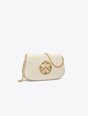 NWT Tory Burch Miller Leather Clutch Shoulder Bag Ivory Off White