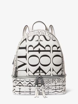 Rhea medium newsprint clearance logo leather backpack, Rhea Medium Newsprint Logo Leather Backpack Michael Kors clearance