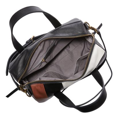 Fossil sydney satchel clearance black multi, INTERNAL USE ONLY LD FEB 17 FOSSIL SYDNEY SATCHEL BLACK BROWN WHITE clearance
