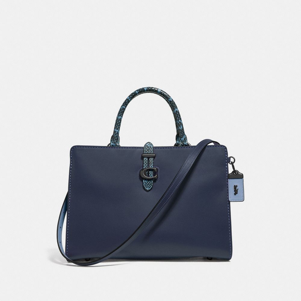 COACH 74077 Serra Colorblock Mixed Leather Satchel Handbag Brass Black Multi NWT