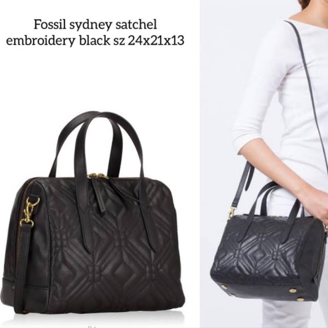 Tas FOSSIL Sydney Satchel Embroidery Black New Original