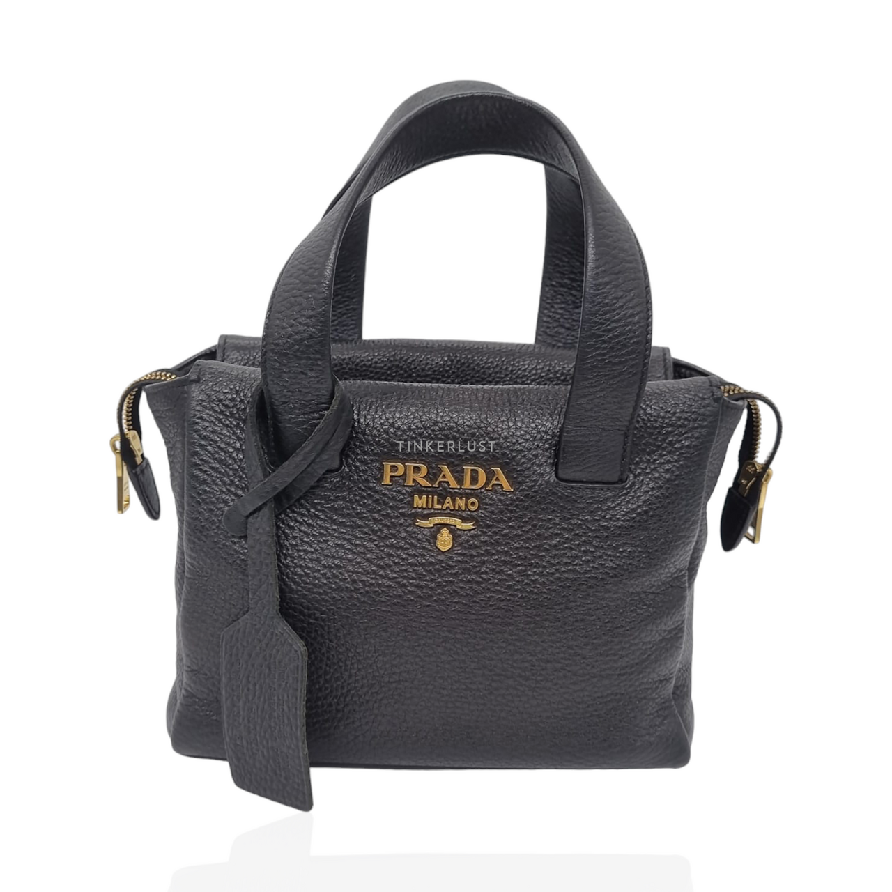 Prada Shoulder Bag Satchel Black Leather Vitello Phenix 1BB087 New