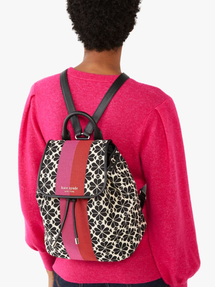 Spade Flower Jacquard Stripe Sinch Medium Flap Backpack Kate