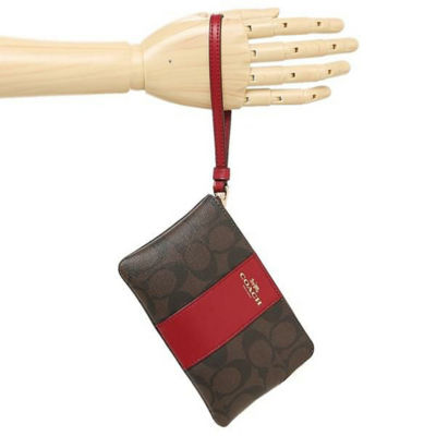 Coach 58035 clearance, Buy Coach Corner Zip Wristlet In Signature Canvas Brown 1941 Red clearance