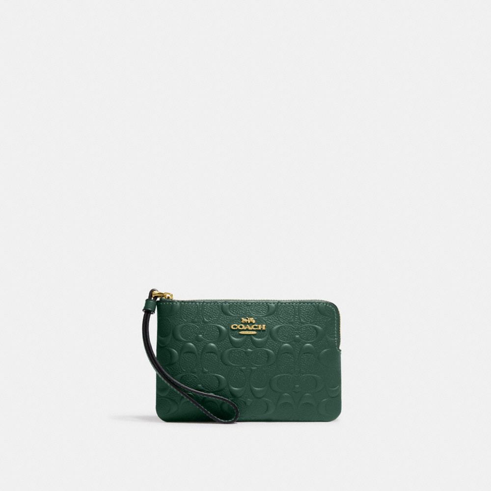 Corner zip wristlet clearance in signature leather, Coach Boxed Corner Zip Wristlet In Signature Leather Black clearance