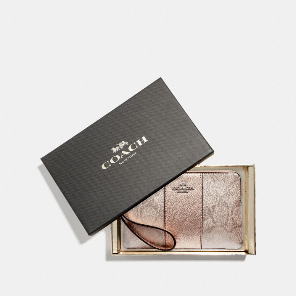 Coach f38655 clearance, NEW COACH Boxed Corner Zip Wristlet in Signature Canvas with clearance