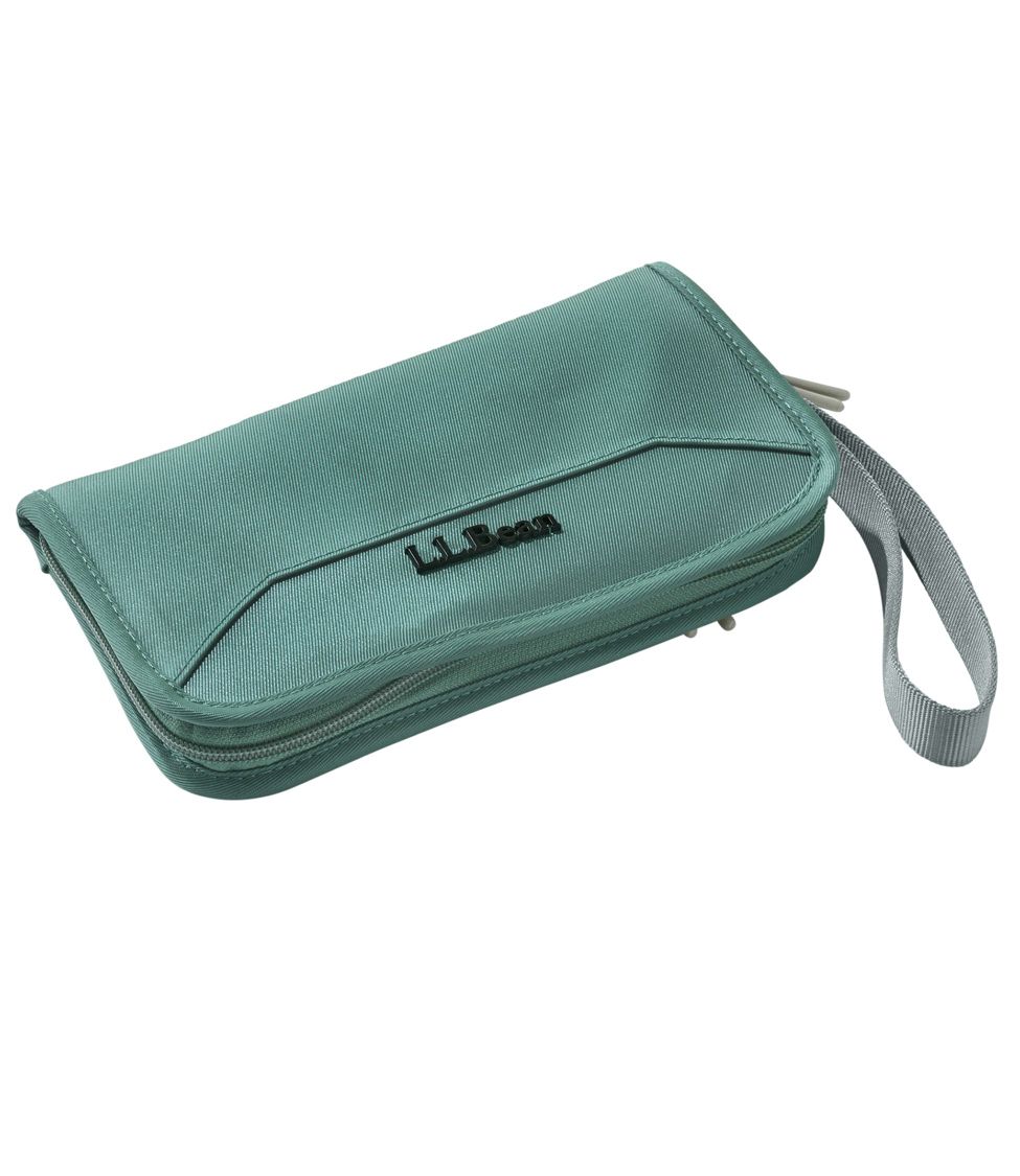 L.L. Bean Leather Wristlet Wallet Clutch Brown Green Zipper