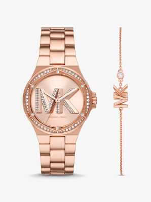 Lennox Pav Logo Rose Gold Tone Watch and Bracelet Set Michael