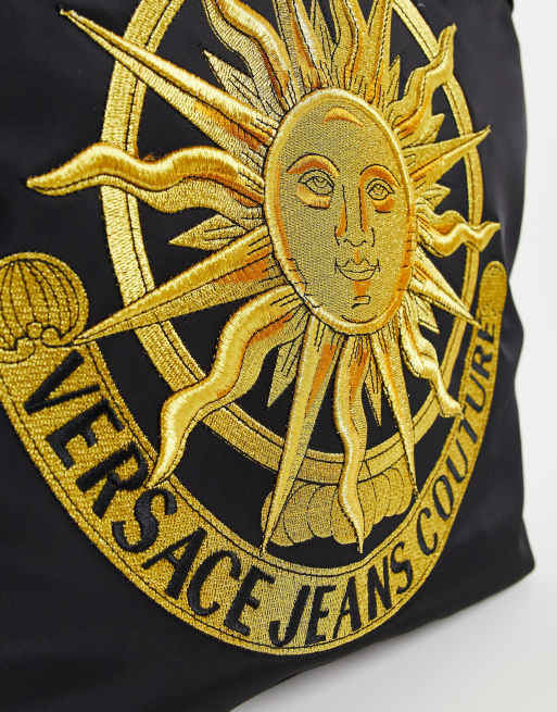 Versace Jeans Couture sun embroidered tote bag in black