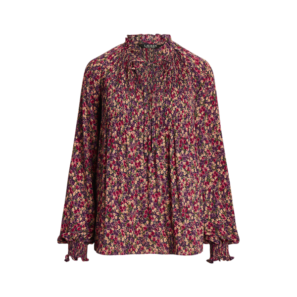 Floral Pleated Georgette Tie Neck Blouse for Women Ralph Lauren UK