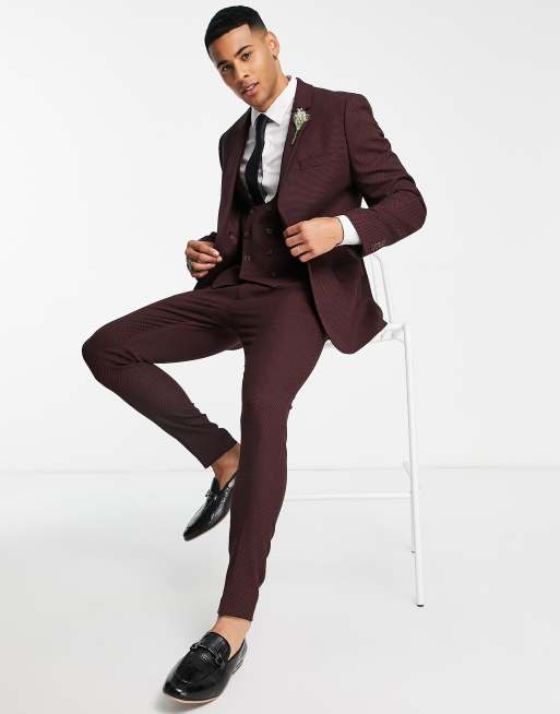 ASOS DESIGN wedding super skinny suit jacket in birdseye texture