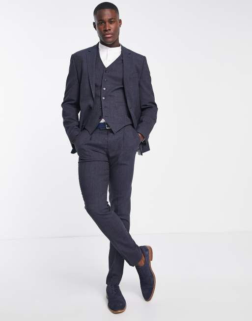 Noak wool blend skinny suit pants in navy Glen plaid ASOS