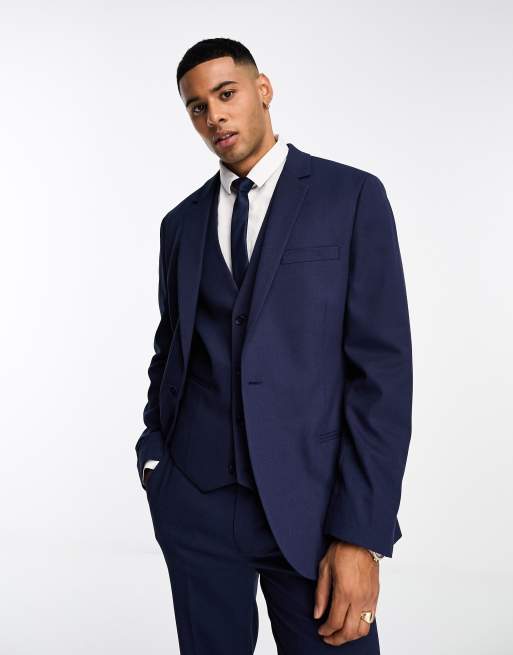 Asos navy blue clearance suit, ASOS DESIGN slim suit jacket in navy in micro texture ASOS clearance