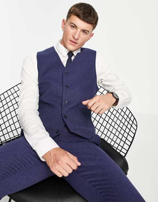 ASOS DESIGN country wedding skinny wool mix suit vest in navy