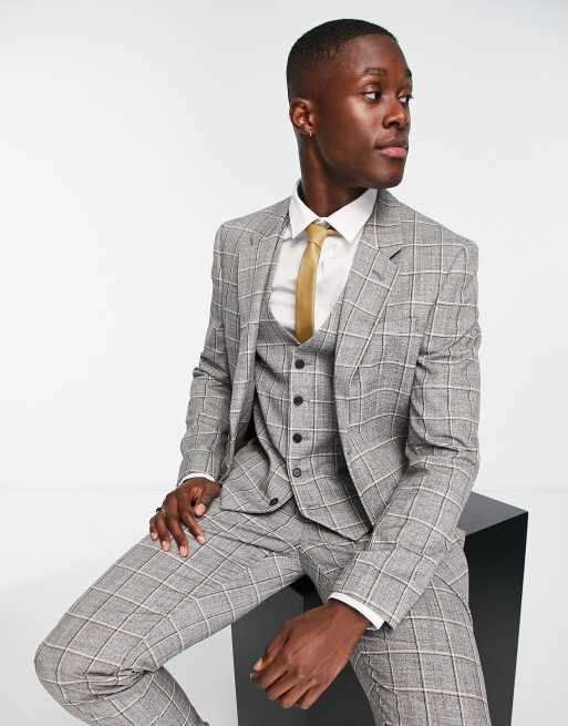 River Island checked suit jacket in grey check ASOS
