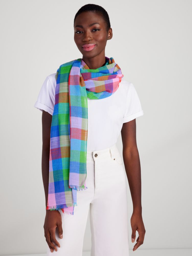 Rainbow clearance plaid scarf, Madras Cotton Oversized Oblong Scarf Kate Spade New York clearance