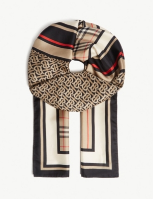 Burberry clearance scarf selfridges, BURBERRY Triple logo printed silk scarf Selfridges clearance