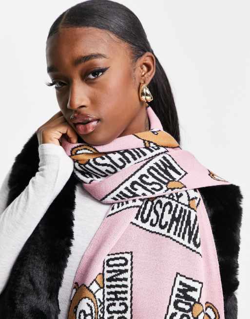 Womens clearance moschino scarf, Moschino printed teddy logo scarf in pink clearance