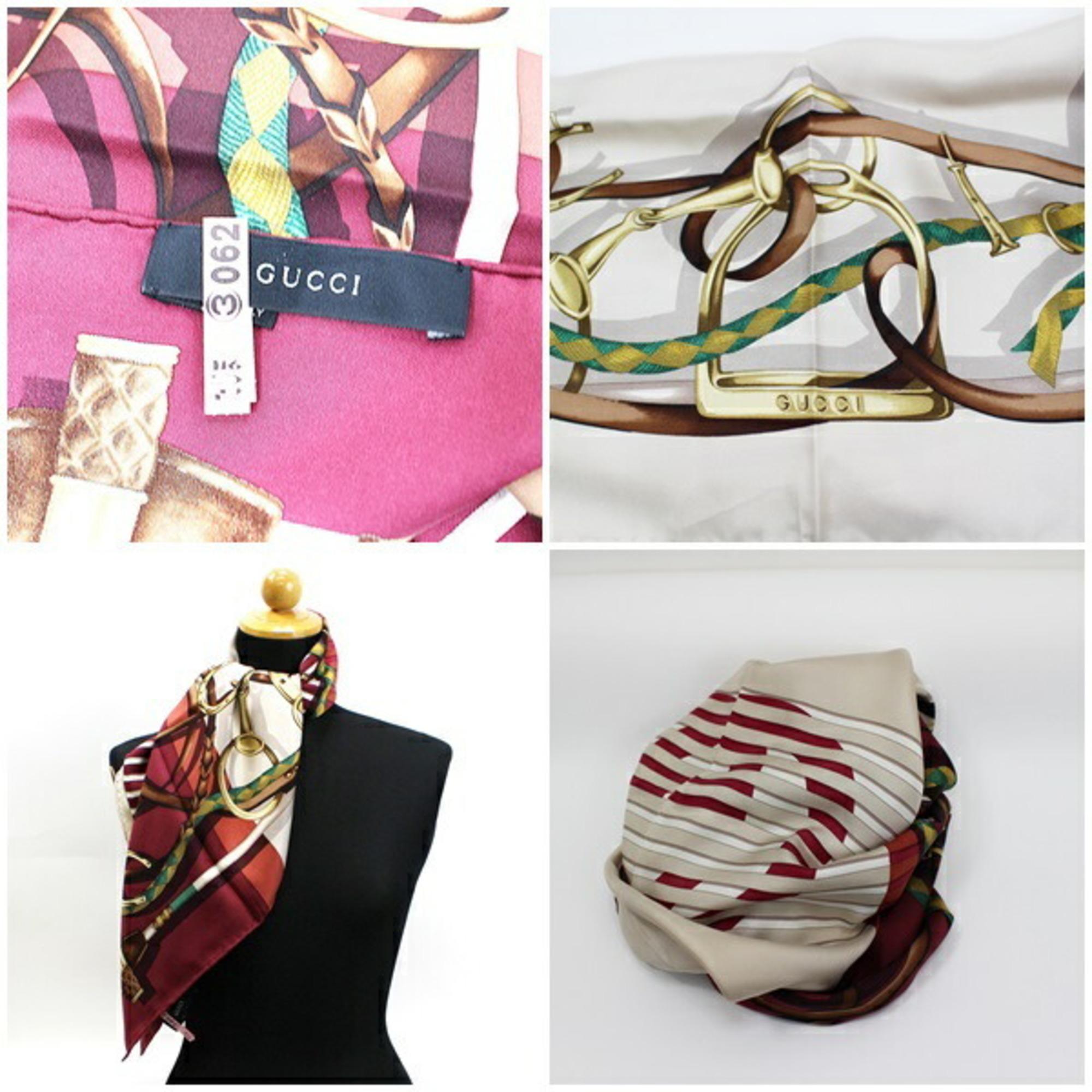 Muffler gucci clearance, Gucci Silk Scarf Muffler Beige X Bordeaux Interlocking Pattern clearance