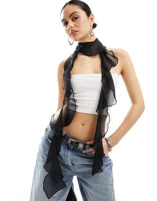 My Accessories chiffon ruffle scarf in black ASOS