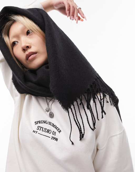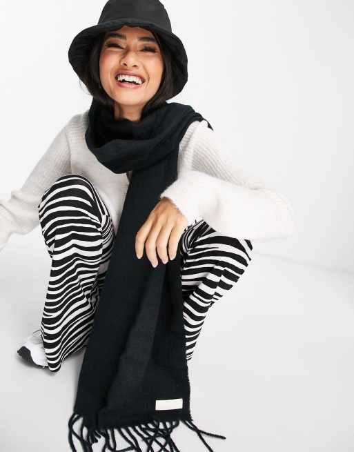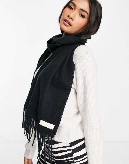 Topshop Supersoft Scarf with woven tab in black BLACK