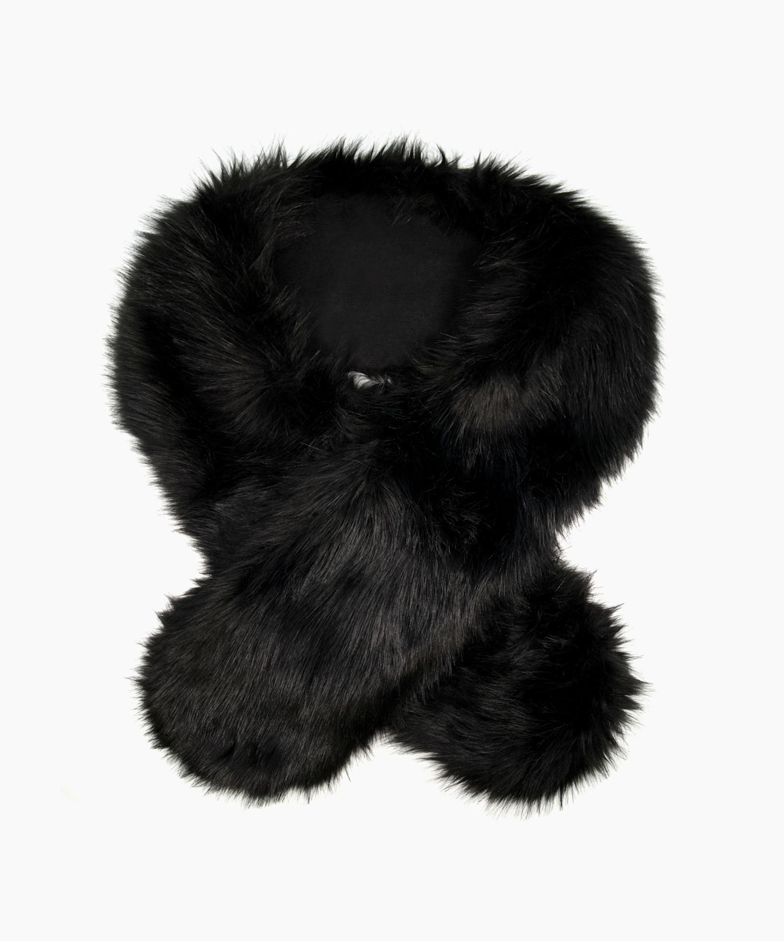 Softly Black Faux Fur Pull Through Shawl Club L London UK