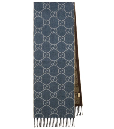 Gucci clearance scarf ssense, Gucci Gg Jacquard Wool Knit Scarf W tassels In Navy lightblue clearance