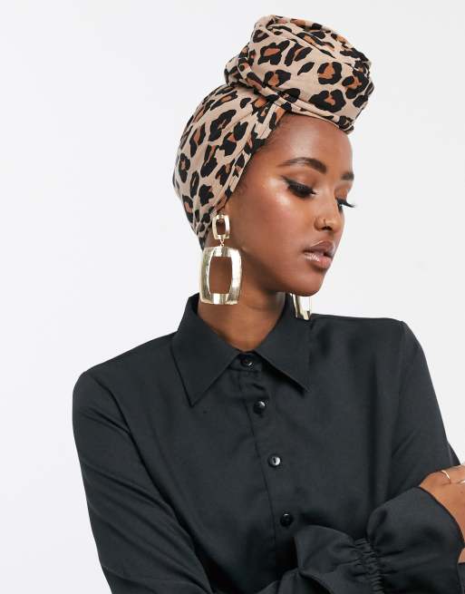 ASOS DESIGN large plain headscarf in leopard print ASOS