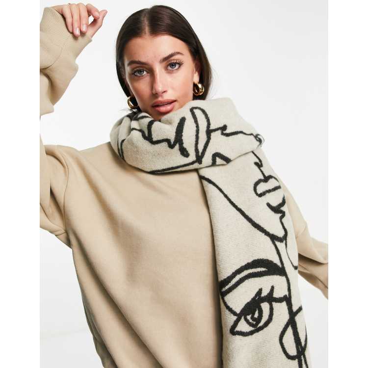 ASOS DESIGN abstract face jacquard woven scarf in stone and black