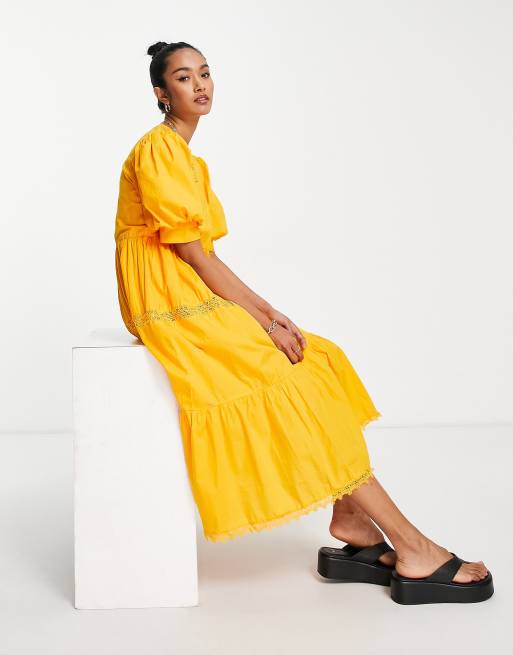 Tommy hilfiger cotton clearance tiered midi dress, Y.A.S cotton tiered embroidered midi dress in orange ORANGE clearance