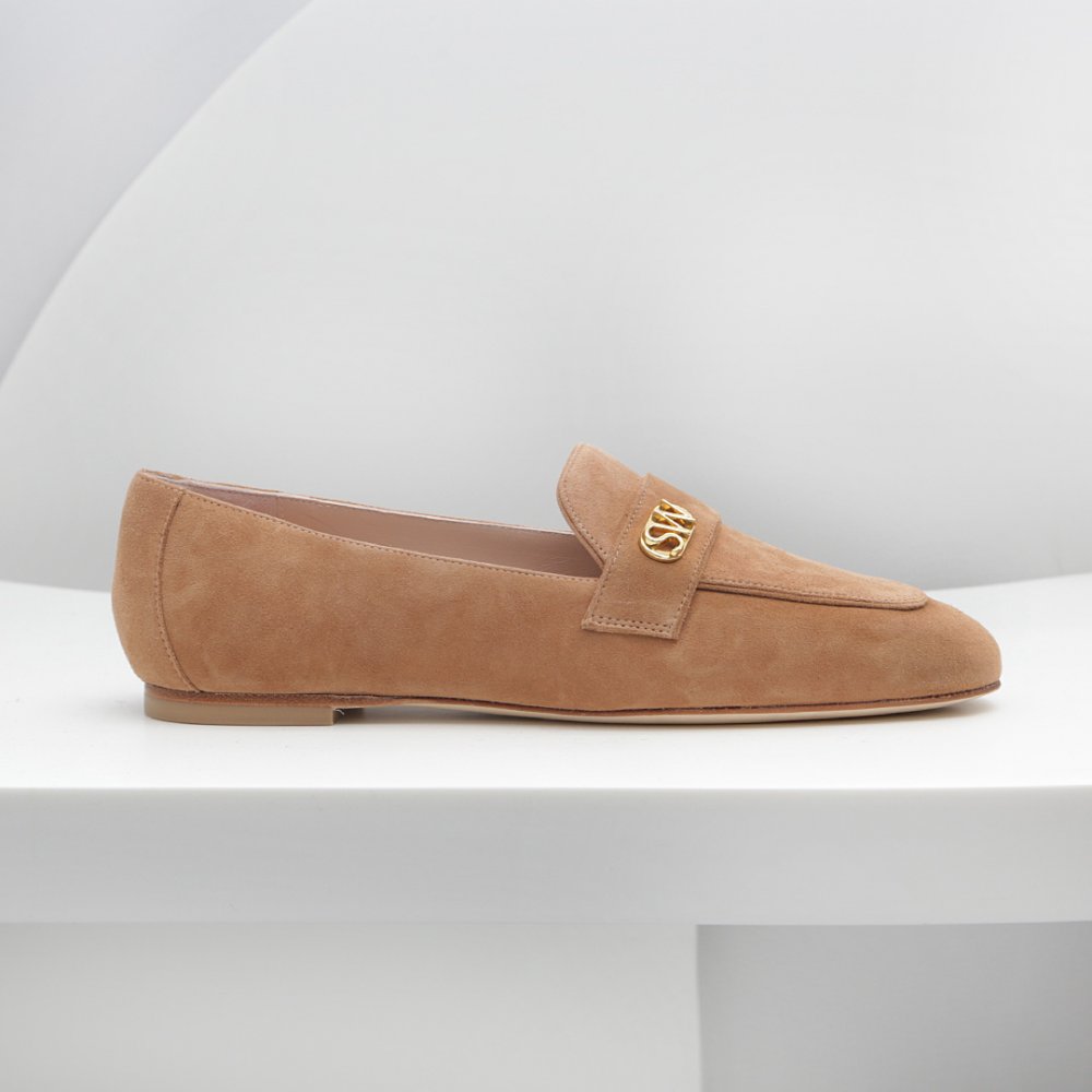 Stuart Weitzman PAYSON LOGO TAN SUEDE Taupe Light Brown Loafer