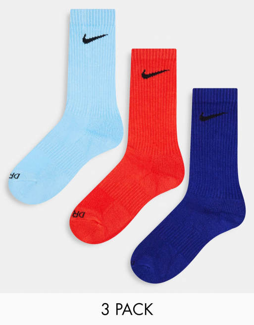 Nike Training unisex cush 3 pack socks in red blue and navy