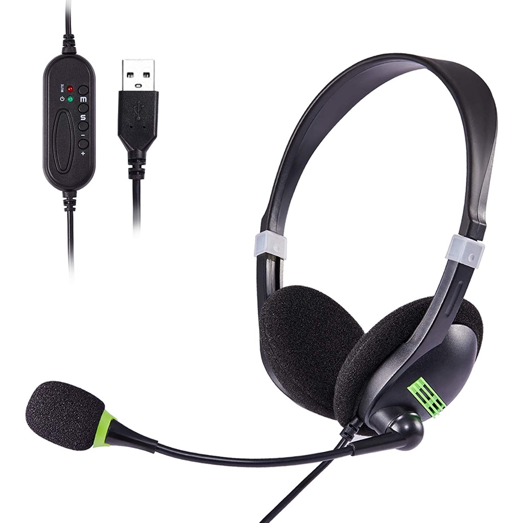 Headsets with microphone USB headset with microphone noise cancellation and audio controls stereo PC headphones for business call center office