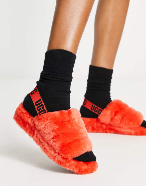 Red yeah ugg clearance slides, Fluff Yeah Metallic Sparkle Slipper for Babies UGG clearance