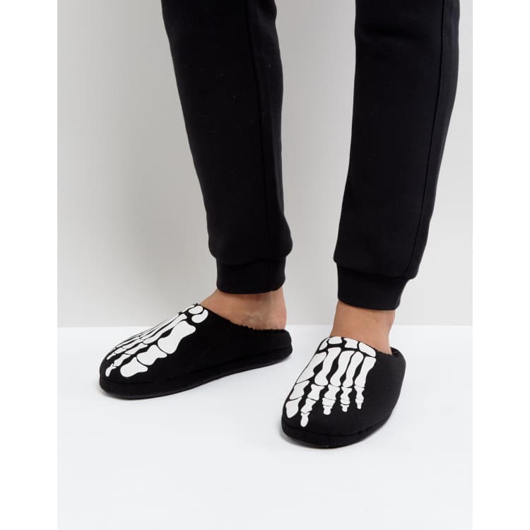 ASOS Halloween Slip On Slippers In Black With Skeleton Glow In The Dark Detail