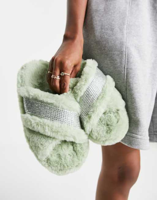 ASOS DESIGN Zena embellished chunky slider slipper in sage ASOS