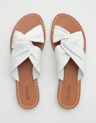EUC Soludos Clara Beach Slides White Leather Slip On Sandals Women s Size US 10