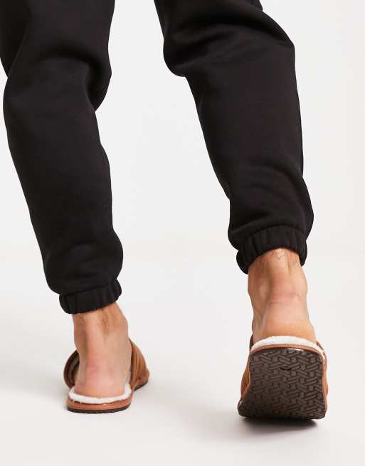 New Look faux fur slip on mule slippers in tan ASOS