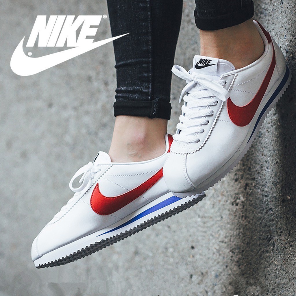 NIKE Women s Cortez Leather Shoe White Varsity Red Varsity Royal