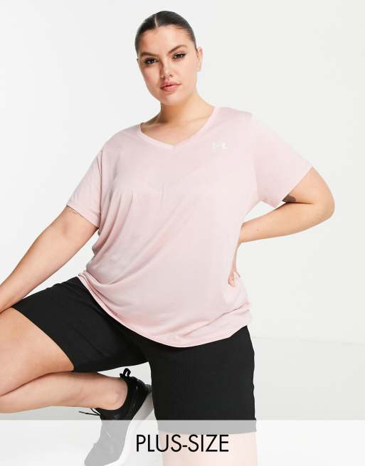 Under armour plus clearance size shirts, Under Armour Plus Tech V neck t shirt in pink clearance