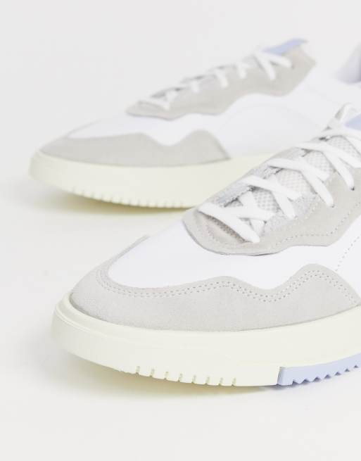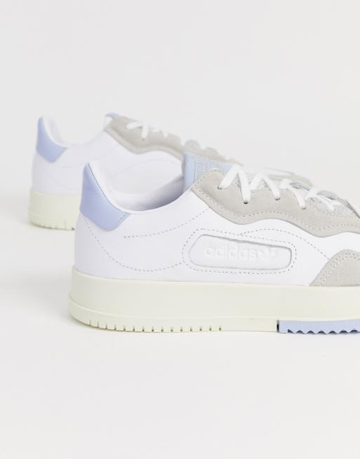 adidas Originals SC Premier trainers in white with blue heel tab