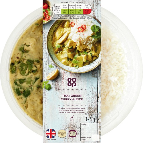 Calories in Co op Thai Green Curry Rice 380g Nutrition